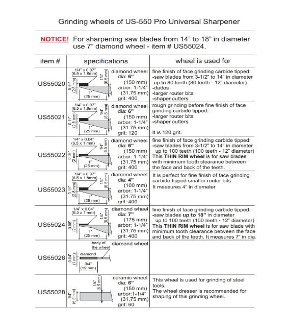 the max RPM is 6000. This wheel comes standard with the US-550 Universal sharpener.